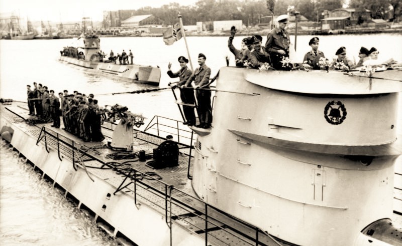 Niemal dokładnie rok przed wybuchem II wojny światowej, w pierwszych dniach sierpnia 1938 r., stocznię Deschimag A.G. Weser w Bremie opuścił pierwszy niemiecki okręt podwodny typu IX A (U 37), który był dużą jednostką bojową (niemal 77 m długości) zdolną do operowania na akwenach położonych bardzo daleko od bazy. Wkrótce do służby weszły kolejne wersje oceanicznych U-Bootów. U podstaw rozpoczęcia budowy na początku drugiej połowy lat 30. ubiegłego wieku tego typu jednostek podwodnych leżało przekonanie naczelnego dowództwa Kriegsmarine, że okręty te będą w przyszłej wojnie zdolne do operacyjnego współdziałania z nawodnymi siłami zwalczającymi transport przeciwnika. W ostatnich miesiącach pokoju, do agresji niemieckiej na Polskę, zbudowano w tej samej stoczni w północnych Niemczech jeszcze sześć „dziewiątek” dalekiego zasięgu posiadających dwukadłubową konstrukcję (kadłub sztywny mieścił się w kadłubie zewnętrznym), w której udało się inżynierom umieścić zarówno zbiorniki balastowe, jak i zbiorniki paliwa w kadłubie zewnętrznym. Ich wyporność wynosiła ponad 1000 t na powierzchni i prawie 1200 t w zanurzeniu. W ten sposób konstruktorzy wygospodarowali lepsze warunki życia i służby, a ponadto zwiększyli zasób powietrza przypadający na jednego członka 48-osobowej załogi, zapewniając dłuższe przebywanie okrętu na patrolu i w zanurzeniu. O takich wygodach, jakie panowały w przestronnych pomieszczeniach długiej stalowej cylindrycznej rury okrętów oceanicznych, podczas rejsu bojowego mogli pomarzyć podwodniacy, którzy służyli na dużo mniejszych jednokadłubowych jednostkach typu II, nazywanych żartobliwie „kajakami” lub „dłubankami”, i na średniej wielkości pełnomorskich okrętach nowej generacji typu VII, czyli półtorakadłubowych, gdzie kadłub sztywny jednostki był osłonięty częściowo przez konstrukcję kadłuba lekkiego. Te ostatnie okręty podwodne, w różnych wersjach, były najbardziej „zapracowanymi” jednostkami bojowymi Kriegsmarine, co pokazała wojna na morzu w latach 1939-1945. Ich dużej skuteczności dowiodły działania podczas bitwy o Atlantyk.