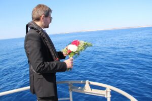 Następnego dnia Okrętem Maltańskich Sił Zbrojnych popłynęliśmy na miejsce spoczynku wraku. Na wodę zrzucono kwiaty. Minutą ciszy i wierszem Krzysztofa Kamila Baczyńskiego “Ballada Morska” oddano cześć i chwałę 13 poległym marynarzom. …I na ląd wesoły nie zeszli, i na dno nie spłynęli jak kamień, tylko byli jak wzniesione ramię kołyszące się to wzwyż, to w głąb. Panieneczki błękitne się śmiały na łodygach wodnych trąb…W latach 2014 – 2017 Stowarzyszenie Wyprawy Wrakowe prowadziło ekspedycje na wrak Kujawiak pod patronatem The Explorers Club.